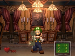 Treasure is also a big part of the game. You can get treasure from capturing ghosts, finding chests, or from shaking basic furniture. The more treasure you collect throughout the game, the better the rank you’ll get at the end of the game. Upon completing the game, you can unlock the “Hidden Mansion” which is essentially the game’s hard mode. All it does is double the damage ghosts do to you while also doubling the damage you do to them. But that’s only in the American version if the game, as the PAL version got a better version of this mode. There’s also the gallery, which has all of the portrait ghosts on display in a hall underneath E. Gadd’s lab, which is nice to look at every once in a while.